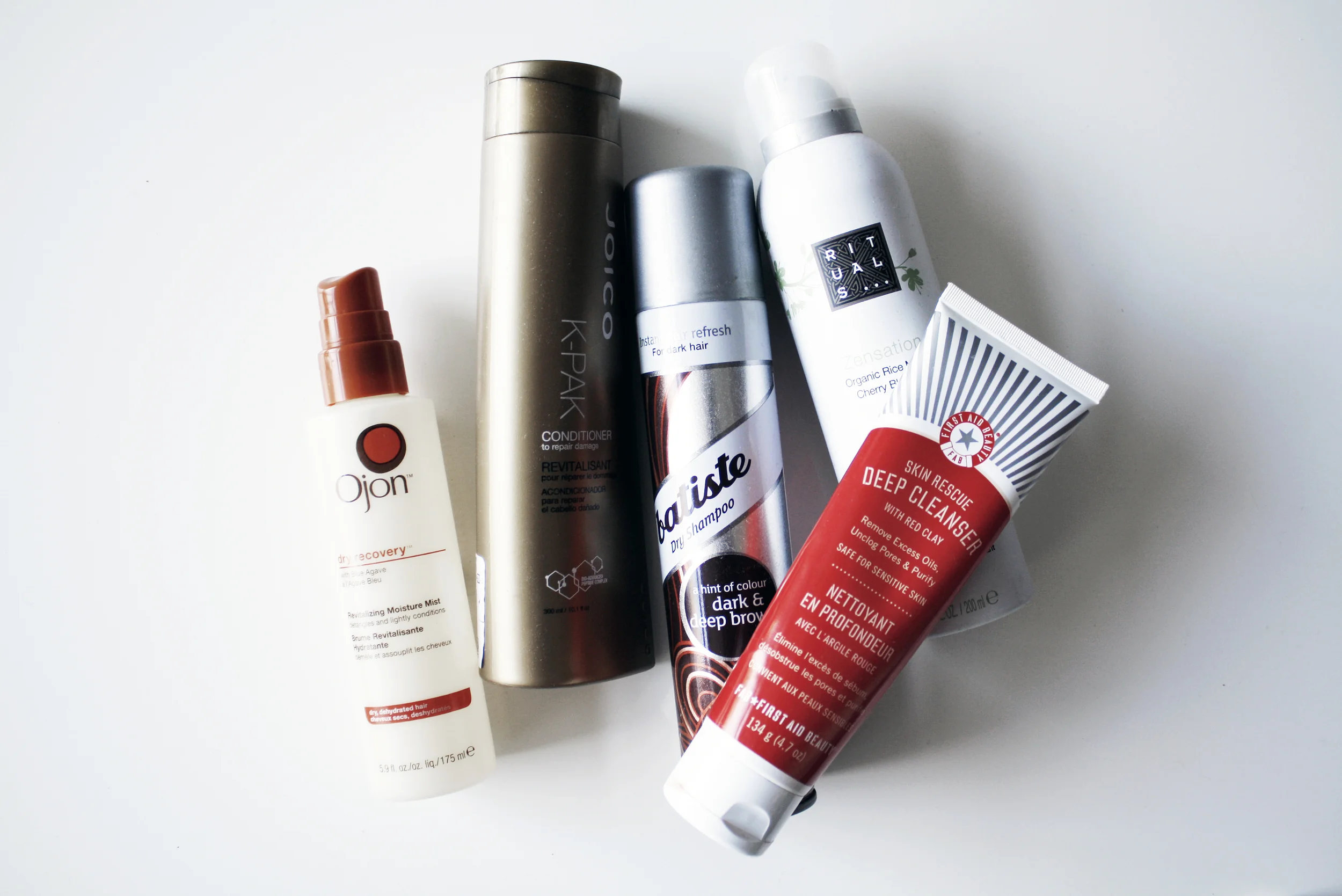 For hair, I recently finished using the Ojon Dry Recovery Revitalizing Moisture Mist. This was a great product that I really enjoyed using! You shake it up to activate and just spritz onto wet just showered hair. I like that this stuff feels very moisturizing in the hair but lightweight at the same time. It lasted me a long time and I think really helped nourish my hair. I finished the Joico K-Pak Reconstruct Conditioner that helps with damaged hair. I didn't notice any huge difference in my hair but it did make my hair look super shiny and feel soft. Since I dye my hair regularly now, it's important I also look for hair products for damaged hair. Finally, in the hair department, I finished my second or third bottle of the Batiste Dry Shampoo for Dark & Deep Brown hair. This stuff is my favorite dry shampoo that I will repurchase again and again. It doesn't leave a weird white film on my hair ever and just works really well at masking any oil you have. Absolutely love and recommend this stuff for other dark hair girls!