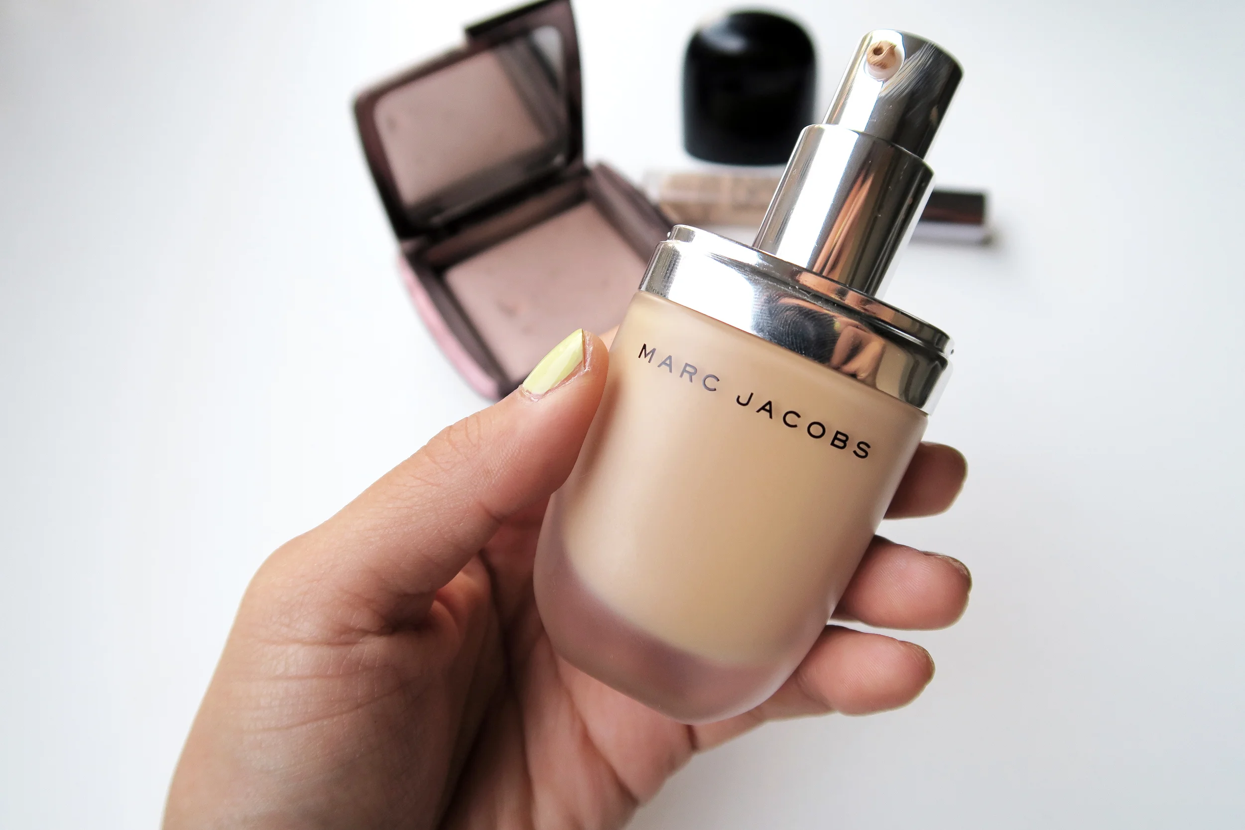 I recently hauled the Marc Jacobs Genius Gel Foundation and let me tell you, I have worn nothing else because this stuff looks and feels amazing and I feel like it just makes my skin look like my skin but better! Way, way better! First of all, can we just appreciate the pretty packaging? I feel very satisfied each morning just looking at this on my bathroom counter. I have the shade 44 Golden Medium, and it's a pretty spot on yellow based match for me. I love that it's oil free and lately I'm just really into gel based foundations because they have a nice natural look to them. It's very hydrating and sits really comfortably on the skin. It's a great buildable base and I think it looks great just with 1 coat because then I go in with my new Urban Decay Naked Skin Concealer that is super creamy and easy to blend! I haven't been using this for too long and I'm already hooked.